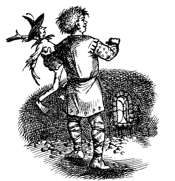 – Давай, юноша, – обратился привратник к великану, сидевшему в глубине комнаты и таращившемуся на путников так, что, казалось, глаза того и гляди вылезут из орбит, – беги в дом и передай, что сказала эта козявка.