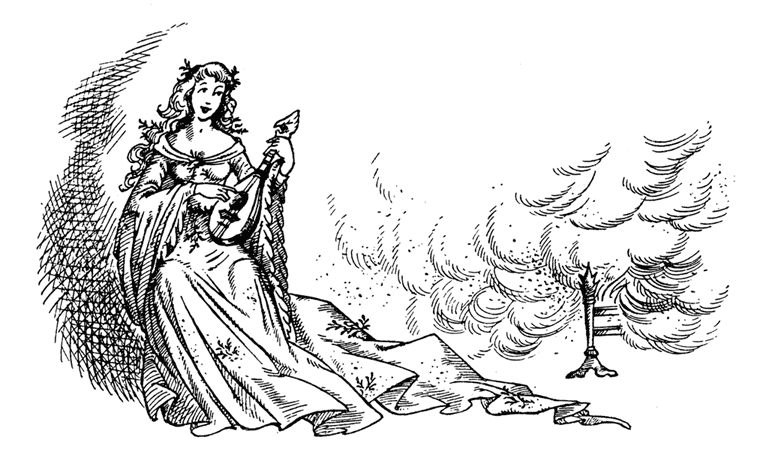 Колдунья, не говоря ни слова и не спуская глаз с принца, бесшумно пересекла комнату, подошла к небольшому тайнику в стене рядом с камином и вынула оттуда горсть зелёного порошка. После того как она бросила его в огонь, порошок неярко вспыхнул, и в воздухе поплыл сладкий дурманящий аромат. По мере того как они говорили, аромат становился всё сильнее, заполнял собой комнату, затуманивая мозг, путая мысли. Затем колдунья достала музыкальный инструмент наподобие мандолины и принялась перебирать пальцами струны, извлекая ровные монотонные звуки, которые через несколько минут перестаёшь замечать. Но чем меньше обращаешь на них внимания, тем увереннее они проникают в мозг и кровь, лишая способности думать. Помузицировав некоторое время, королева отложила инструмент и начала говорить – вкрадчиво и тихо: