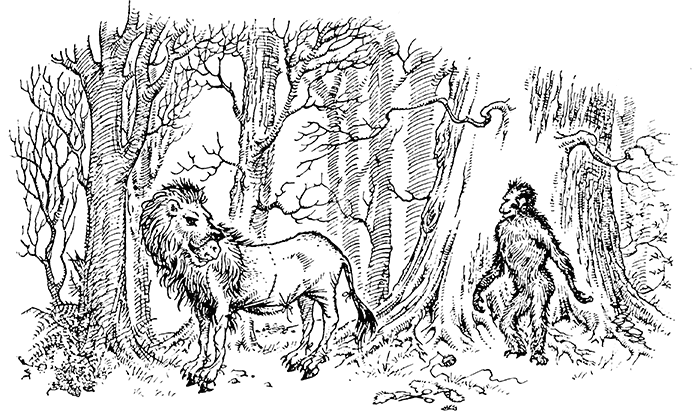 – О, это не был говорящий лев, – возразил Хитр, – об этом можешь не беспокоиться. Выше водопадов в Западных дебрях говорящих зверей нет. Эту шкуру носил дикий, бессловесный лев.