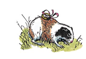И впрямь: в траве возилась морская свинка, перепоясанная ленточкой, к которой было привязано сверкающее жёлтое кольцо.