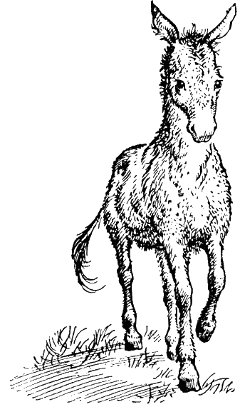 – Смотрите! – неожиданно воскликнула Джил. К ним робко приближалось приятное четвероногое создание серебристо-серого цвета. Они секунд десять смотрели на него, прежде чем пять или шесть голосов разом воскликнули: «Да это же старина Лопух!» Они никогда не видели его при дневном свете без львиной шкуры, и узнать его было трудно. Он стал самим собой – замечательным осликом с мягкой серой шёрсткой и милой и честной мордой, и если б вы его увидели, то сделали бы то же, что Люси и Джил: бросились к нему, обняли, поцеловали в нос и погладили бы его уши.