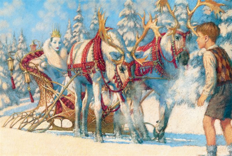 Эдмонду всё это пришлось совсем не по вкусу, но он не осмелился ослушаться. Он шагнул в сани и уселся у ног Королевы. Она укрыла его своей меховой мантией и подоткнула её со всех сторон.