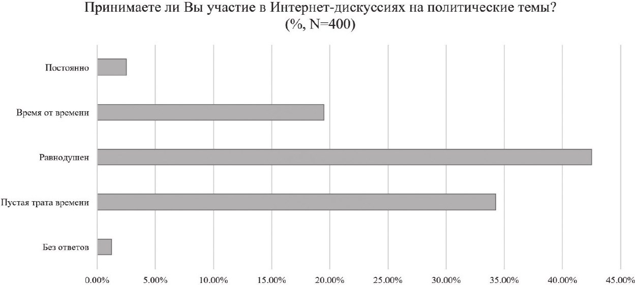 Респонденты также показали небольшую заинтересованность в участии в Интернет-дискуссиях (см. Рис. 3).