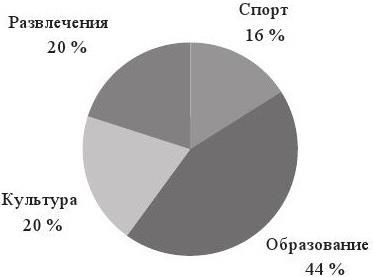 Oтдельно изучалась представленность информации о екатеринбурге на местных интернет-сайтах и порталах, поскольку информация, получаемая через такие сайты, набирает все большую популярность. на этих сайтах большинство публикаций имеет культурно-развлекательную направленность, так или иначе они касаются вопросов образования, учебных заведений города и студенческих проблем. Второй большой блок – культурные и развлекательные мероприятия, в том числе выставки, фестивали, концерты. Спортивная тематика представлена крайне лапидарно (рис. 2).