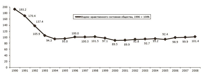 Институт психологии РАН в русле развиваемой в нем количественной макропсихологии (Юревич, Ушаков, 2007) разработал индекс нравственного состояния общества (ИНСО)[5]5