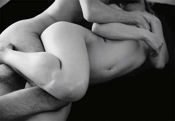 Женщина также может развернуться на мужчине, попробовав «сжатую позицию» в обратном положении. На этот раз мужчина держит колени и ноги вместе и кладет ноги ей на грудь. Женщина полностью контролирует весь процесс. Объединив этот секс с ролевой игрой (см. стр. 102–103), мужчина становится ее секс-рабом.