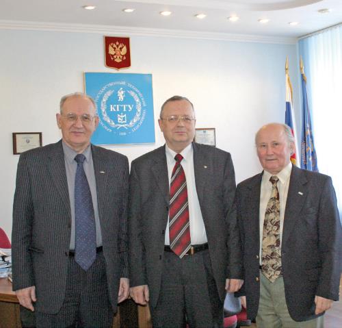 Визит в КГТУА. В. Рождественского, зам. руководителя Федерального агентства по образованию РФ, 2005 г. (слева направо – А. К Москалев, С. А. Подлесный, А. В. Рождественский)