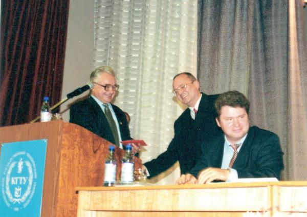 Расширенное заседание ученого совета КГТУ, 1999 г. (слева направо – В. Ф. Шабанов, С. А. Подлесный, Г. А. Кузнецов)