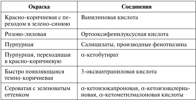 Цветная реакция различных соединений с треххлористым железом