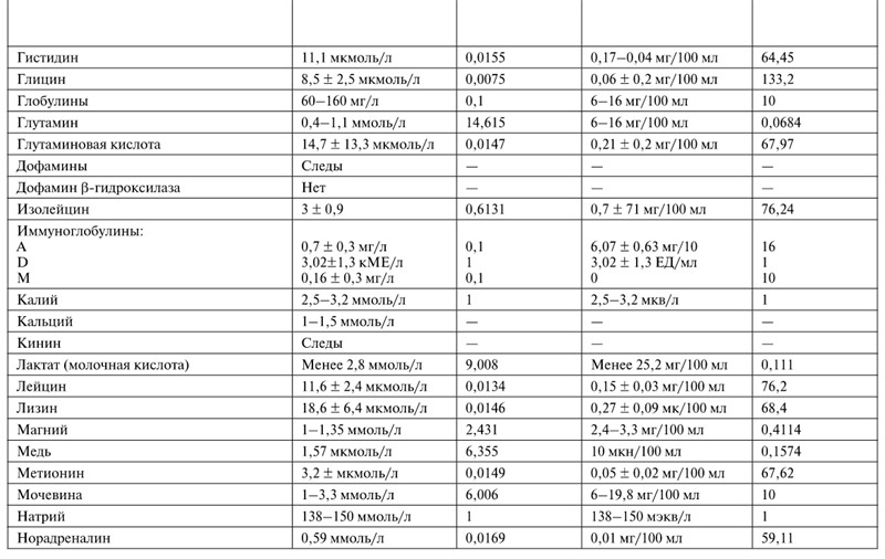 Сводный справочник показателей спинномозговой жидкости