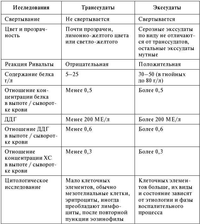 Дифференциально-диагностические признаки транссудатов и экссудатов