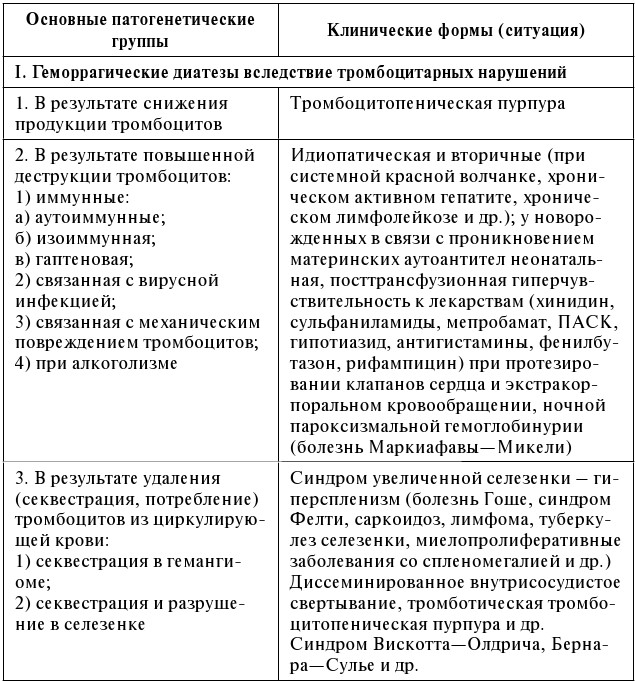 По патогенезу различают следующие группы геморрагических диатезов: