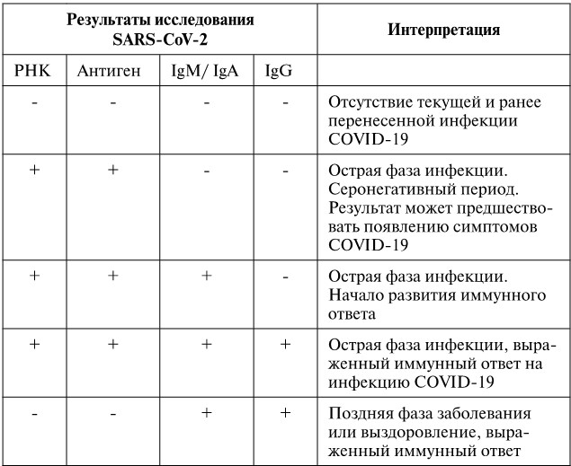 Для диагностики COVID-19 рекомендуется проводить раздельное тестирование на антитела класса IgM/IgA и IgG, мониторинт появления антител в динамике через 5–7 дней (в неясных случаях).