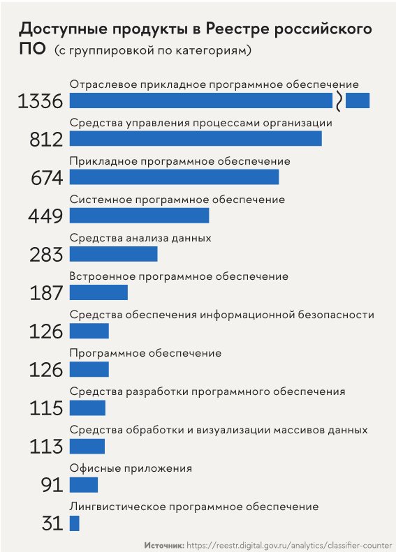 Без господдержки создание новых программных продуктов может оказаться для отечественных разработчиков коммерчески непривлекательным, и эта ситуация опасна для всей национальной экономики. К примеру, участники мероприятия «Российский ИТ-рынок в 2023 году: от траектории устойчивого роста к цифровой конкуренции» констатировали, что только в сегменте индустриального ПО около 350 решений с критической степенью зависимости от зарубежных продуктов[9]9