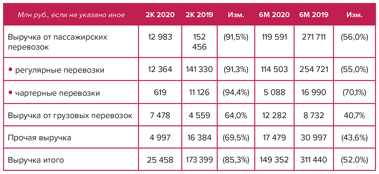 Источник: Аэрофлот объявляет финансовые результаты по МСФО за 6 месяцев 2020 года. chrome-extension://efaidnbmnnnibpcajpcglclefindmkaj/https://ir.aeroflot.ru/fileadmin/user_upload/files/rus/infortmation_disclosure/press-release/2020/2020_08_31_AFLT_6M_2020_IFRS_RUS.pdf