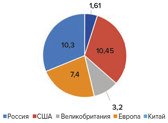 Рисунок 1. Выручка от доставки еды в 2016 году, млрд долл.