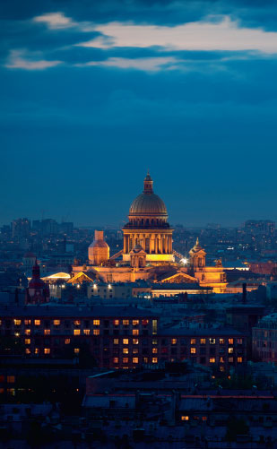 Вид на Исаакиевский собор. Ночью город выглядит совсем иначе, нежели днем