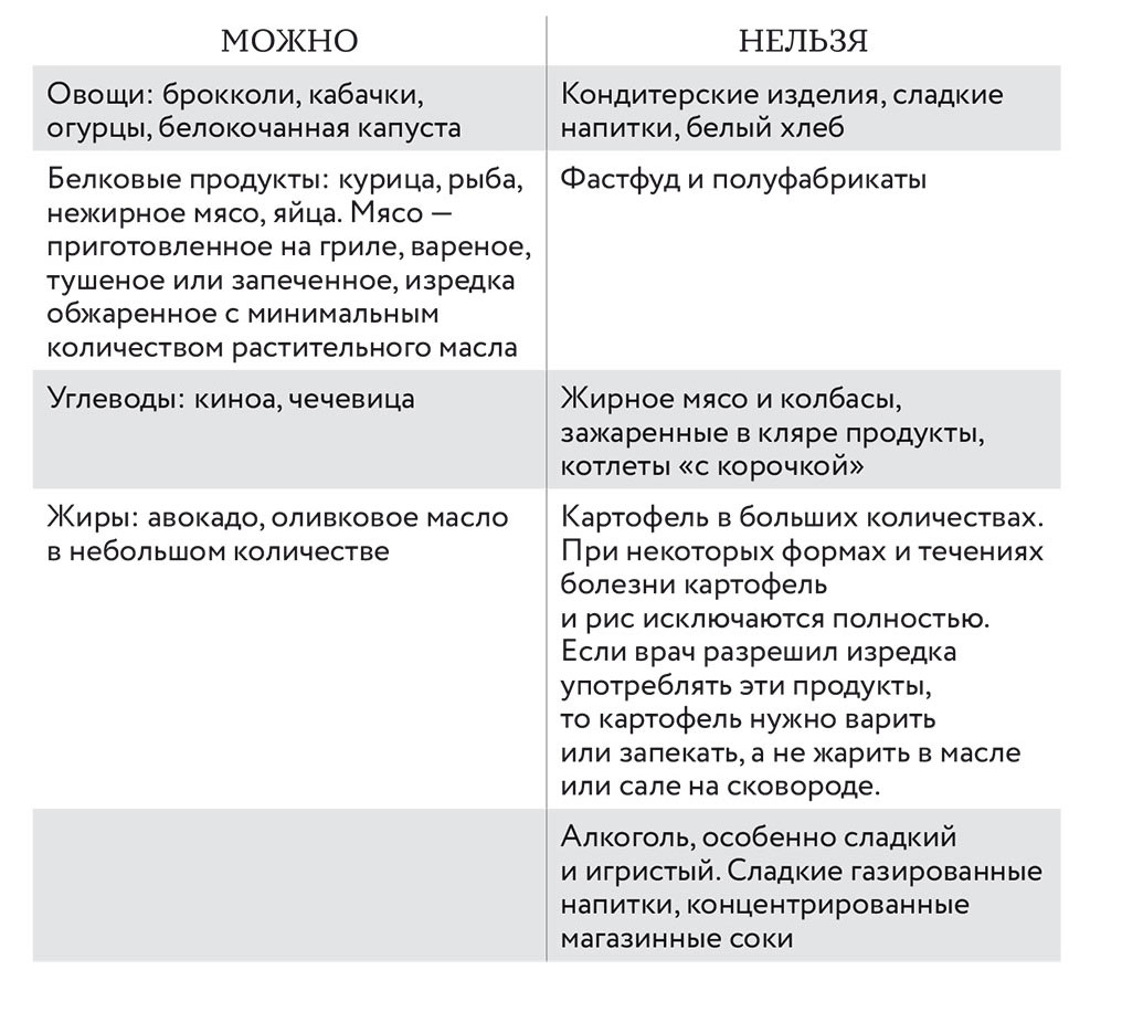Не стоит воспринимать эту книгу как единственное руководство к действию, обязательно проконсультируйтесь с врачом: дело в том, что у нескольких людей с одинаковой формой диабета могут быть разные реакции на одни и те же продукты. Кто-то, например, безболезненно может есть гречневую кашу в умеренных количествах, а у кого-то она вызовет резкий скачок сахара в крови. Кроме того, влияние могут оказать другие сопутствующие заболевания (гастриты, аллергии, гипертония и так далее). Подход должен быть системным! И даже если вы получили рекомендации врача относительно того, что вам можно, а что нет, вводить новые блюда в свой рацион нужно предельно аккуратно, пристально следя за своим состоянием.