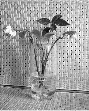 Весна – самое подходящее время для черенкования практически всех видов комнатных цветочных растений. Верхушечные черенки (для крупнолистных растений длиной 12 – 15 см, для мелколистных – 8 – 10 см) ставят на укоренение либо в непрозрачный сосуд с водой, либо в песчаную смесь с легкой землей, торфом, в вермикулит. Для создания наилучшего режима сосуд с черенками помещают в прозрачный полиэтиленовый пакет, слегка стягивая его вверху и помещая на светлое теплое место.