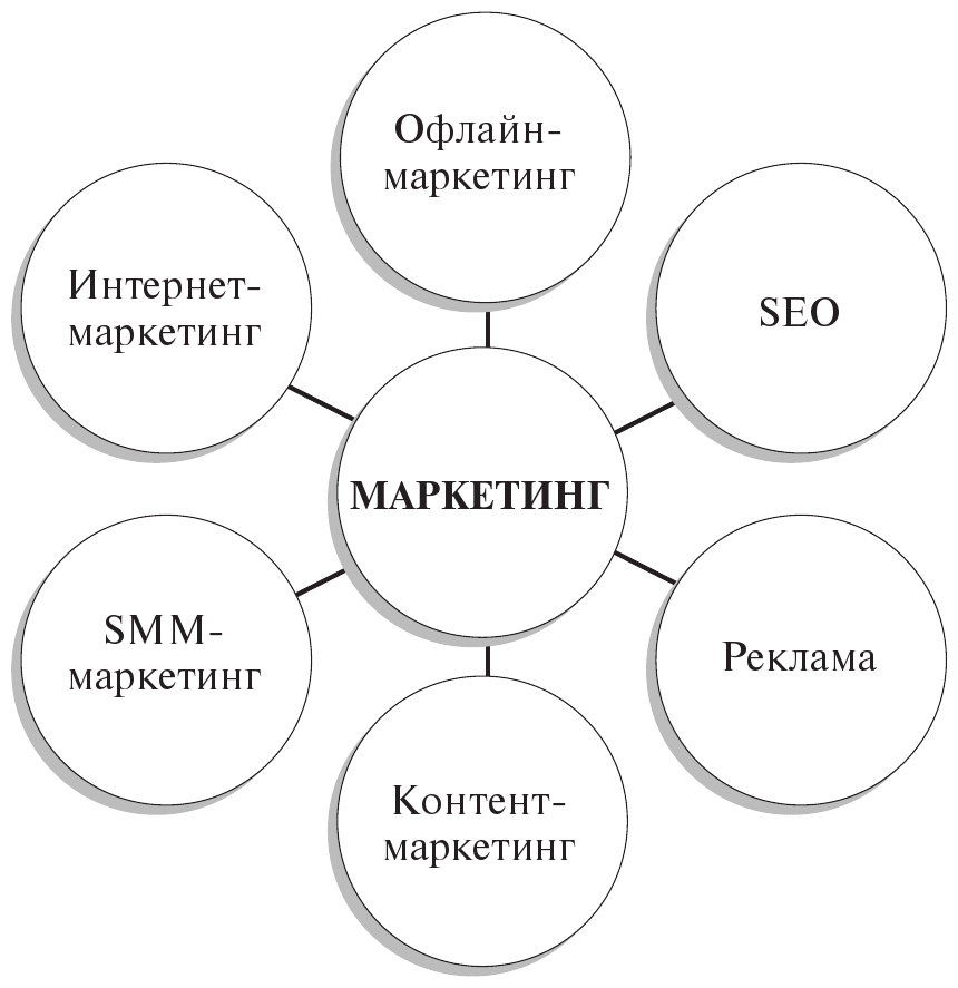 Примером тематического блока может быть тема «Маркетинг». В нее могут входить подтемы «Интернет-маркетинг», «Офлайн-маркетинг» и др. (рис. 3.1).