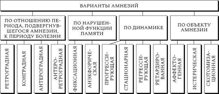 Амнезия – полное выпадение из памяти событий, фактов, явлений, имеющих место в определенный временной период, или же выпадение из памяти той или иной конкретной ситуации (рис. II.1.8).