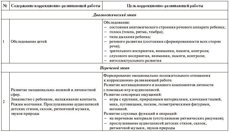 Таблица 1. Этапы коррекционно-развивающей работы