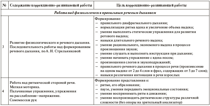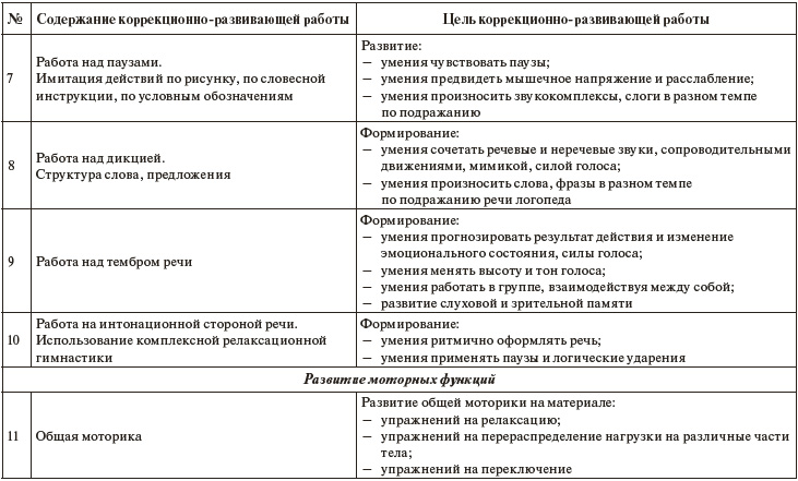 Более подробно остановимся на 1, 2 и 3 частях комплексной психо-коррекционной работы, поскольку они относятся к сфере профессиональной деятельности логопеда, тогда как 4 – выполняется преимущественно воспитателем и родителями, а 5 – назначается врачом.