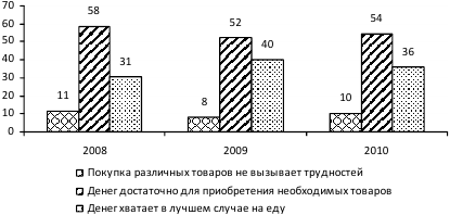 Несмотря на некоторые положительные сдвиги, в 2010 г. более трети населения денег хватает в лучшем случае на еду.