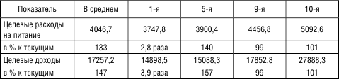Таблица 6. Целевой уровень потребительских расходов и доходов в разрезе 10 %-ных доходных групп (в рублях, 2010 г.)