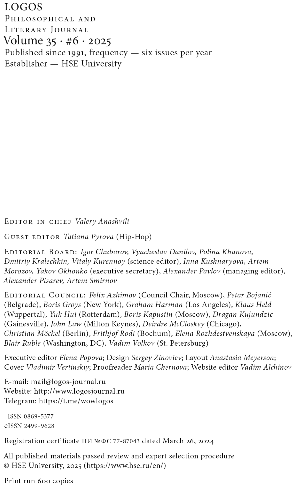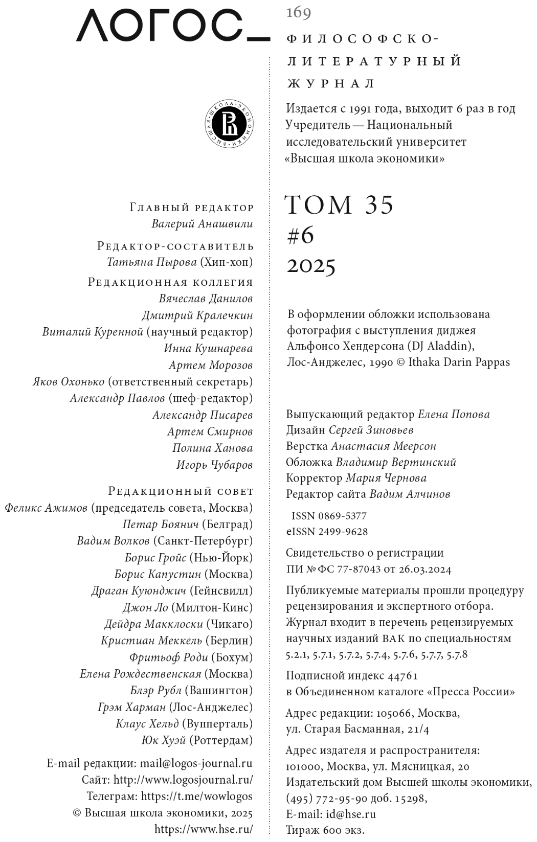 Журнал «Логос» № 6/2025