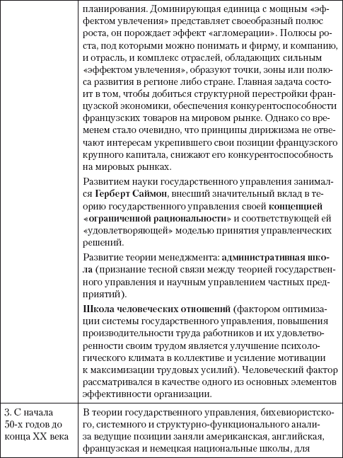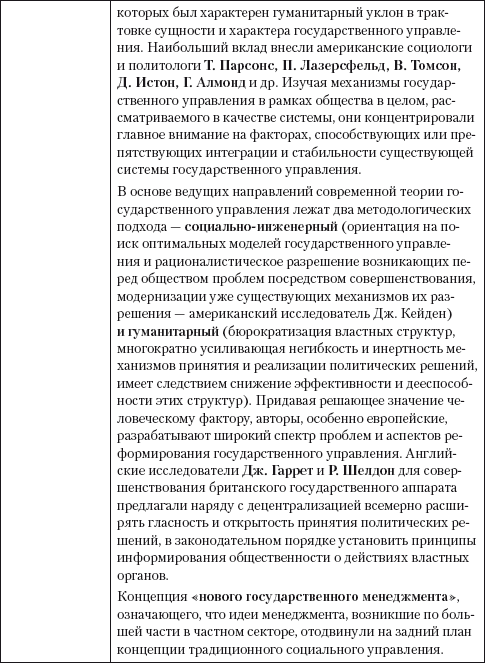Каждый этап отличался существованием доминирующих подходов к проблемам государственного управления, существованием господствующих теорий, концепций, существованием национальных школ управления. Сущность и содержание каждого этапа управления представлены в табл. 1.
