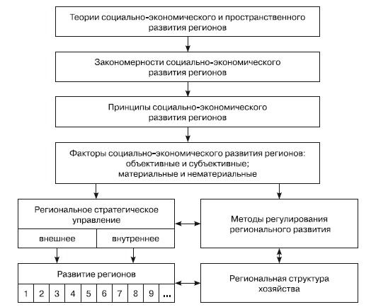 Система методологических и организационных основ развития регионов и формирования региональной структуры хозяйства, показывающая взаимосвязь между важнейшими категориями регионального развития, представлена на рис. 3.