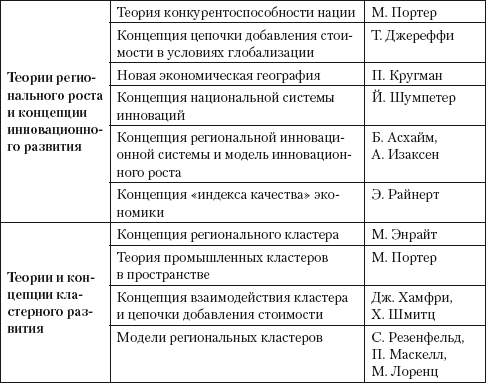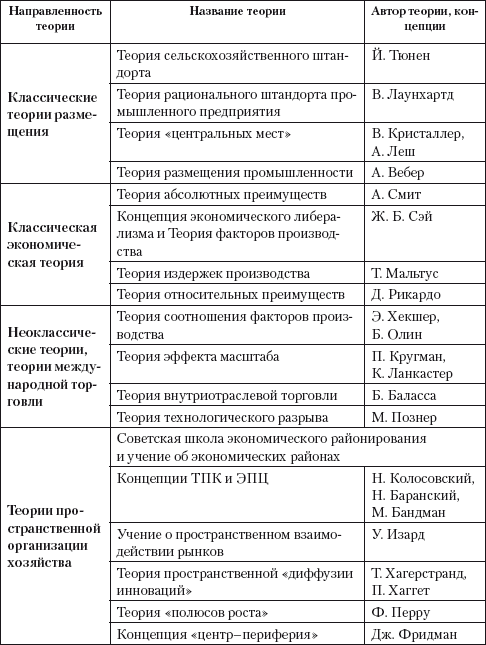 Теоретико-методологическую основу регионального стратегического управления составляют: классические теории размещения; классические и неоклассические экономические теории; теории международной торговли; пространственной организации хозяйства; теории регионального роста и концепции инновационного развития; теории и концепции кластерного развития, исследованные учеными начиная с первой половины XIX века (табл. 4).