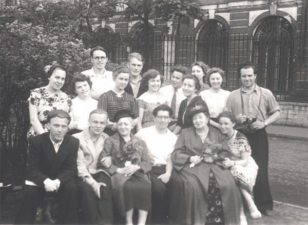 Рядом с Марией Михайловной – солистка хора Г. М. Сандлера Лариса Кириянова, во втором ряду за Марией Михайловной – будущая народная артистка РСФСР Людмила Филатова. Крайний справа – Владимир Морозов. Июнь, 1957 г.