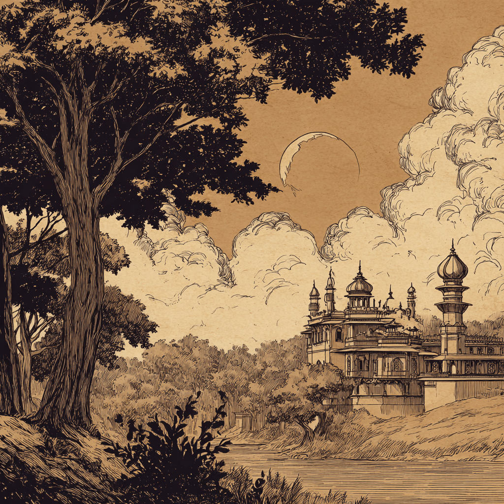 Рассказать обо всех чудесах, которые довелось мне видеть, так же невозможно, как в одной статуе отразить жизнь целой эпохи какого-либо народа. Могу сказать только, что, как ни готовил меня Иллофиллион к тому, что я увижу в Индии, она меня поразила сильнее всех чудес, которые пришлось увидеть за всё наше долгое путешествие. Я знал, что мы едем к подножию Гималаев; знал, что имение Али расположено в прекрасной и живописной долине – но я и вообразить не мог, в какую волшебную красоту мы попадём.