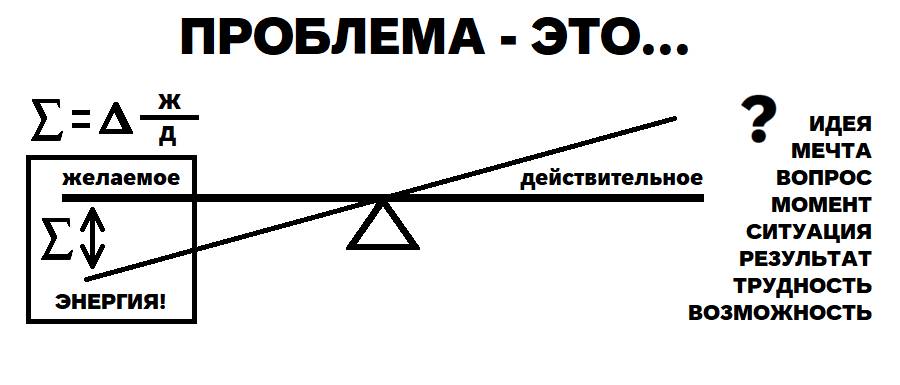– Тренер: Вы правы: «Кому война, а кому мать родна!» Кстати, проблема – не всегда негатив… Сосед паркует во дворе машину рядом с вашей. Вы были довольны своей, до того момента, пока он, гад, не купил новую, лучше вашей!Теперь вы загорелись идеей… Чем выше разница потенциалов, тем больше напряжение. Энергия рождается изнутри и подталкивает побежать либо в автосалон, либо залезть на Drom. Хотя иногда мы платим нервами: живём и терпим, не имея возможности ничего изменить. Равновесие нарушается и по-другому: бывает, что, например, «полученного» оказывается значительно больше, чем «ожидаемого». Вас когда-нибудь удивляли? В хорошем смысле, естественно…