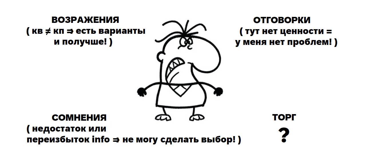 • Отговорка – сопротивление, когда покупатель не видит ценности или во всём предложении, или в какой-либо из его частей.