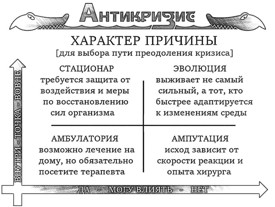 Но нам не так важно название причины (первопричину откопаем позже), как её характер, или контекст. Именно контекст причины является основой для определения верного пути – построения эффективной антикризисной стратегии.