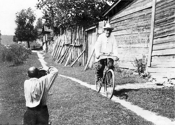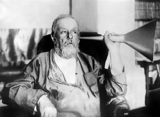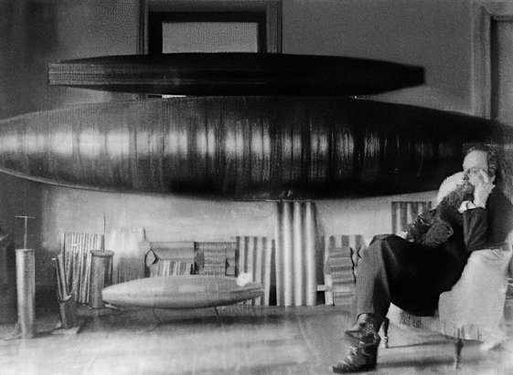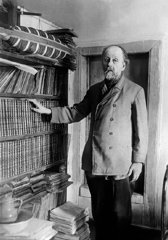 К.Э. Циолковский в своей мастерской у модели дирижабля. 1924
