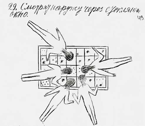 Один из рисунков К.Э. Циолковского к научно-фантастическому фильму. В 1974 году его чертежи и рисунки были объединены