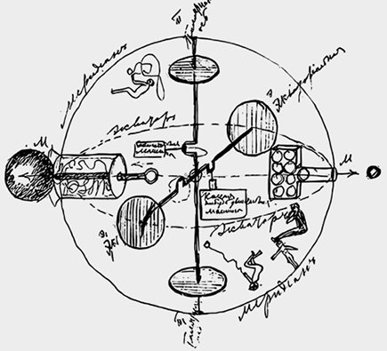 Рисунок К.Э. Циолковского из рукописи «Свободное пространство»
