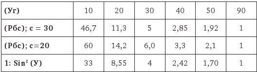 Из второй строки видно, что с 20° наклона работа увеличивается в 11 раз. Потом, из сравнения 2 и 3 строк с четвертой видно, что работу можно грубо считать пропорциональной (1: Sin2. Уг). Чем больше (С), тем близость эта значительнее, и наоборот. Третья строка показывает увеличение работы при С = 20. При малых углах истинная работа, вследствие сферичности Земли, гораздо меньше.