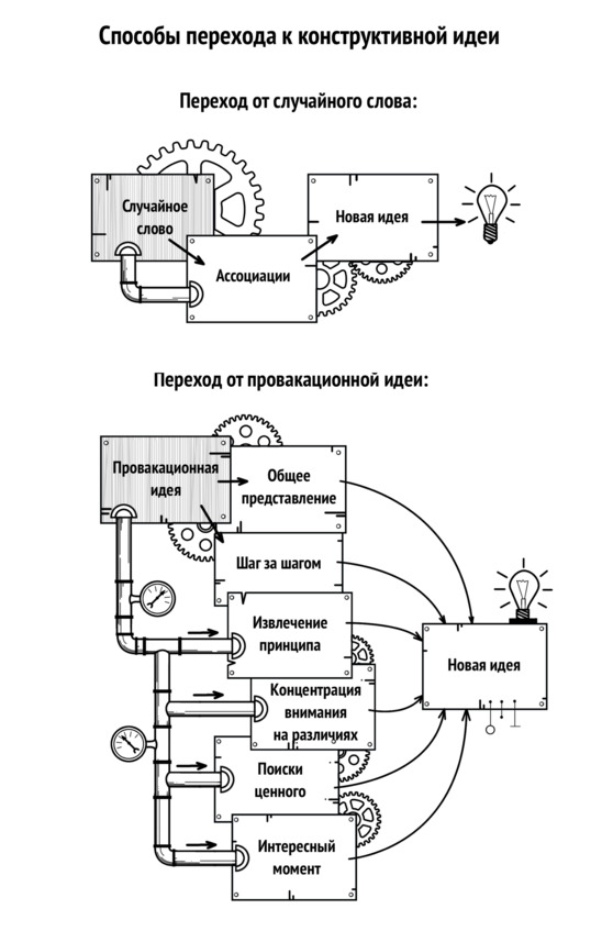 • Процесс нестандартного мышления состоит из двух шагов: создать провокационную идею, которая позволит вырваться за границы устоявшихся рамок мышления; перейти от провокационной к новой, практичной идее.