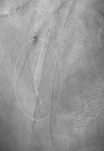 Шрамы. При анализе шрамов на ладони мнения практикующих хиромантов расходятся. Одна часть хиромантов их учитывает при анализе событийной части руки, а вторая не обращает на них никакого внимания. Что касается меня, то в своей практике я не раз находил подтверждение воздействию на человека полученных ранее шрамов и многократно убеждался в том, что шрам несет определенную хирологическую нагрузку, влияя на судьбу положительным или отрицательным образом.