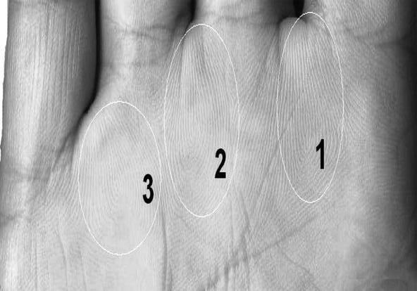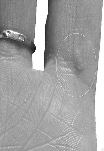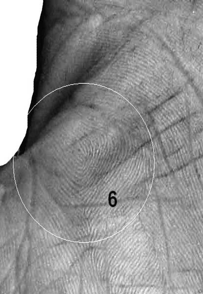 Папиллярные узоры на ладони. Различные типы папиллярных узоров встречаются не только на подушечках пальцев, но и могут находиться на ладонных холмах. Везде, где есть такие узоры, будет концентрироваться огромное количество энергии действия. Таким образом, узоры на холме Венеры – это показатель жизненных сил человека, на холме Нижнего Марса – влияние на характер разума, а на холме Луны свидетельствует о влиянии подсознания. Также могут встречаться петли между холмами в основании пальцев, которые свидетельствуют об усилении инстинктов и желаний личности.