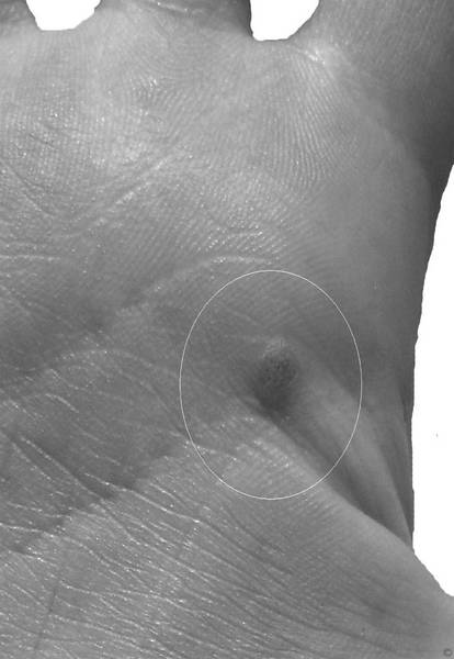 Что касается конкретного положения, которое занимает родинка на ладони, то оно показывает жизненную сферу, в которой произойдут или происходят в настоящее время значительные изменения. У правшей родинка на левой ладони показывает на наследственную карму, которую необходимо отработать в данном воплощении, или ту сферу деятельности, развитию которой необходимо уделить особое внимание. У левшей, наоборот, карму покажут родинки на правой руке. Если родинок много и они рассыпаны по всей ладони, то такая комбинация указывает на скандальность, склонность к конфликтам и свидетельствует о противоречивом, непредсказуемом характере. Люди с меньшим количеством родинок более уравновешенны, а обладатели единственной родинки на ладони – не важно, на правой или левой руке – обладают большой силой духа, решительностью и щедростью, а также усиленными качествами холмов, на которых находятся родинки.