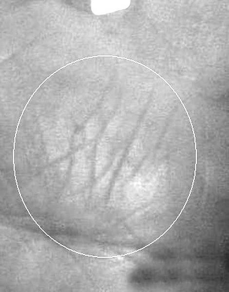 Извилистая линия, исходящая из третьей фаланги мизинца, перерезающая его основание и оканчивающаяся на холме Меркурия, в комплексе с основными знаками суицида указывает на порез вен на руке в результате попытки самоубийства (рис. 2.22 и 2.22–1). На приведенных рисунках нежелание жить у девушки явилось следствием изнасилования в 15 лет (см. линию № 15), результатом которого была предпринята попытка порезать вены, которая к счастью, не привела к смертельному исходу и закончилась врачебным спасением.