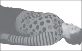 Вот простой, достаточно формальный прием проверки правильного выдоха – он известен с давних пор… Губы сомкнуты, будто для легкого дуновения ветра. Лежа на спине, нужно приложить ладонь к нижней части живота и почувствовать, как под ее тяжестью живот уходит внутрь во время выдоха. Или, лежа на спине, положить на нижнюю часть живота книги и почувствовать, как при более сильном выдохе живот уходит внутрь под их тяжестью. Это и есть движения мышц при правильном выдохе.