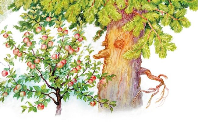 – Не хвастай много, дубище, что ты велик и толст: зато растут на тебе одни жёлуди, свиньям на потеху; а моё-то румяное яблочко и на царском столе бывает.