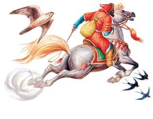 Конь бежит, земля дрожит, изо рта пена, из ноздрей пар валит.